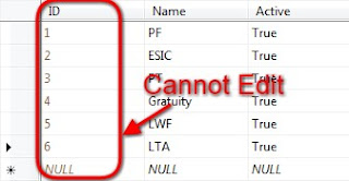 Usually the identity field does not allow the user to edit, when you right click on the table and select Edit.